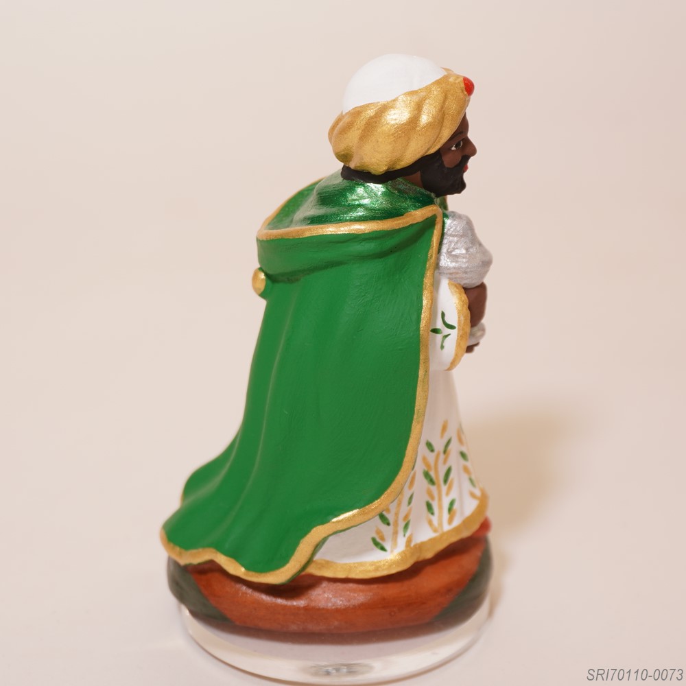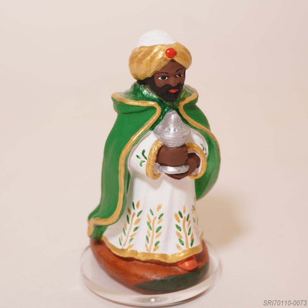 イエスの誕生を拝みに来た東方の三賢人のひとり。高貴な人なので服装も立派です。贈り物を持っています。